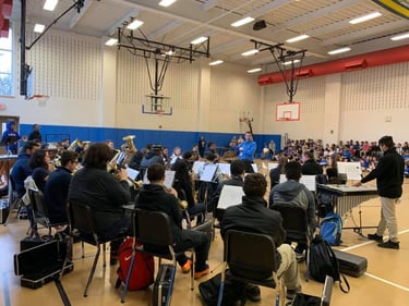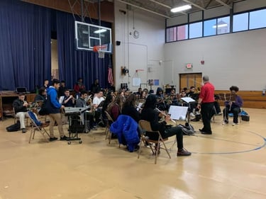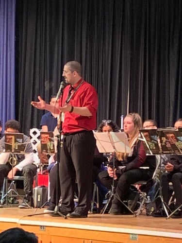 During his 10 years in Waterbury, the program moved from 2 students to over 100 with separate Concert and Symphonic Bands, an afterschool Jazz Ensemble, along with a Conducting Workshop that saw anywhere from 5-15 students auditioning to conduct the band in the Spring Concert. While at Kennedy High, Joel performed at the Palace Theatre, and his band performed for Senator Ted Kennedy Jr. at the Kennedy High School 50th Anniversary Celebration. It was during his time at Kennedy that Joel rediscovered his passion for music composition, and over the course of his ten years composed at least one new song for Band, and one year composed 4 new songs.