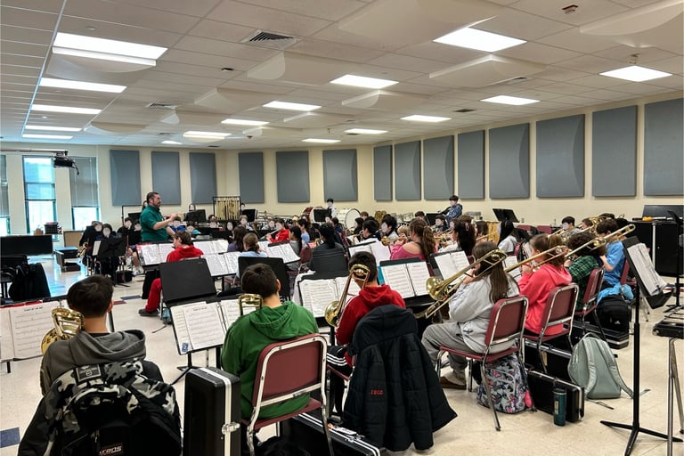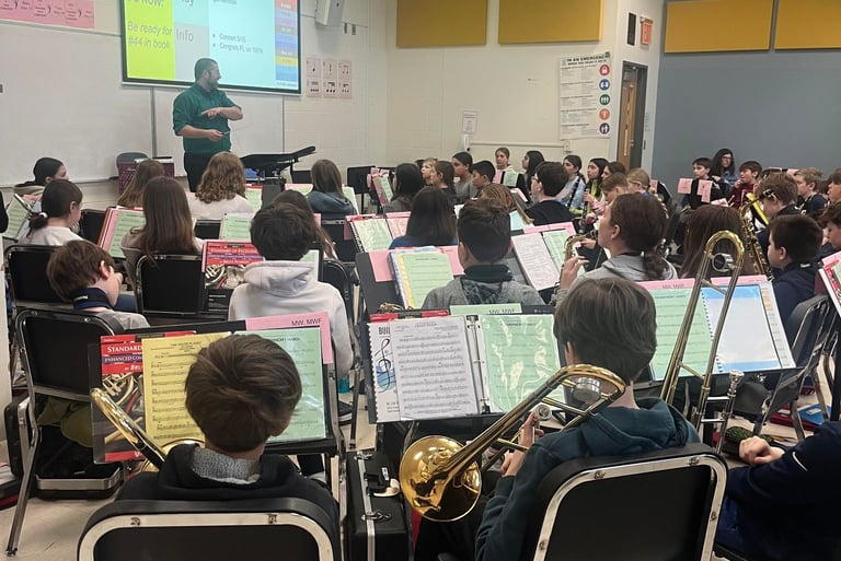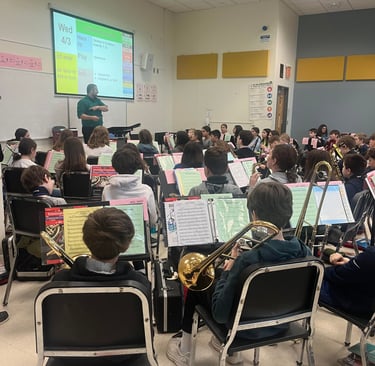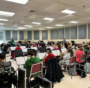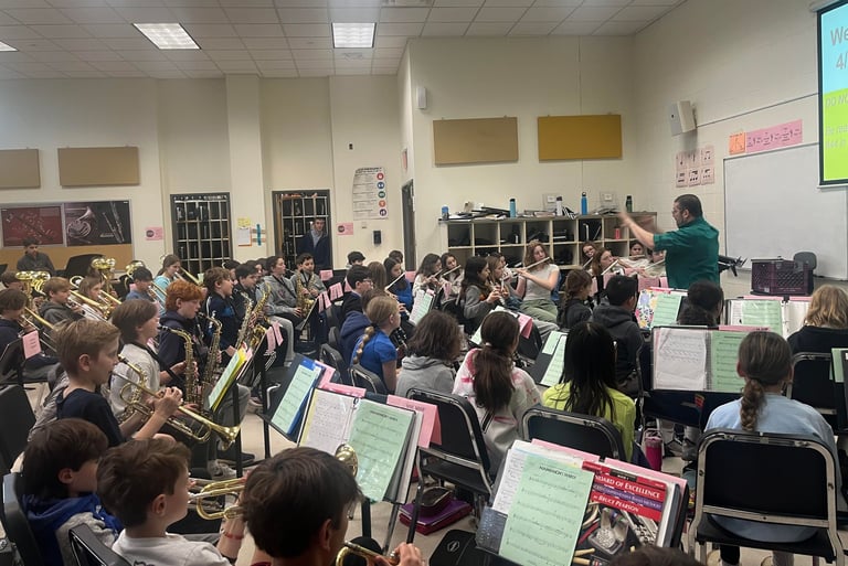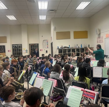 April 2024 Workshop with Rodger Ludlowe Middle School 6th Grade Band on their new song "Agamemnon's March" to be premiered in May of 2024